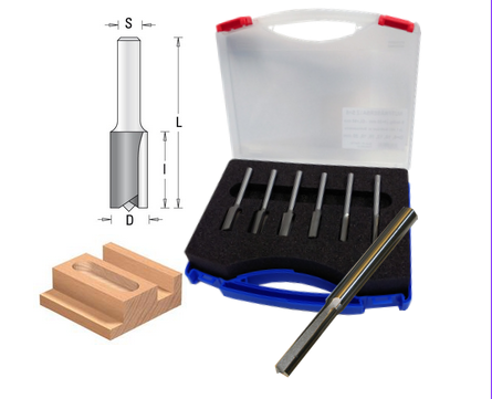 • 6-teiliger hartmetallbestückter Nutfräser-Satz in Kunststoffbox.